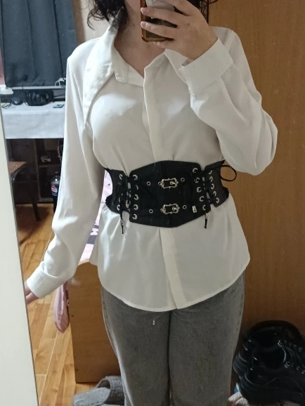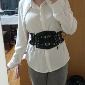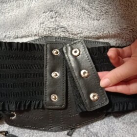 Корсет відповідає очікуванням, в точності як на фото! Дуже зручно одягати через закльопки на спині, тому не доводиться кожен раз возитися з зав’язками. Також матеріал по боках тягнеться, тому корсет не створює дискомфорту. В цілому дуже задоволена, з радістю буду носити! Єдиний невеликий мінус це неприємний запах штучної шкіри, але, я думаю, він скоро пройде.